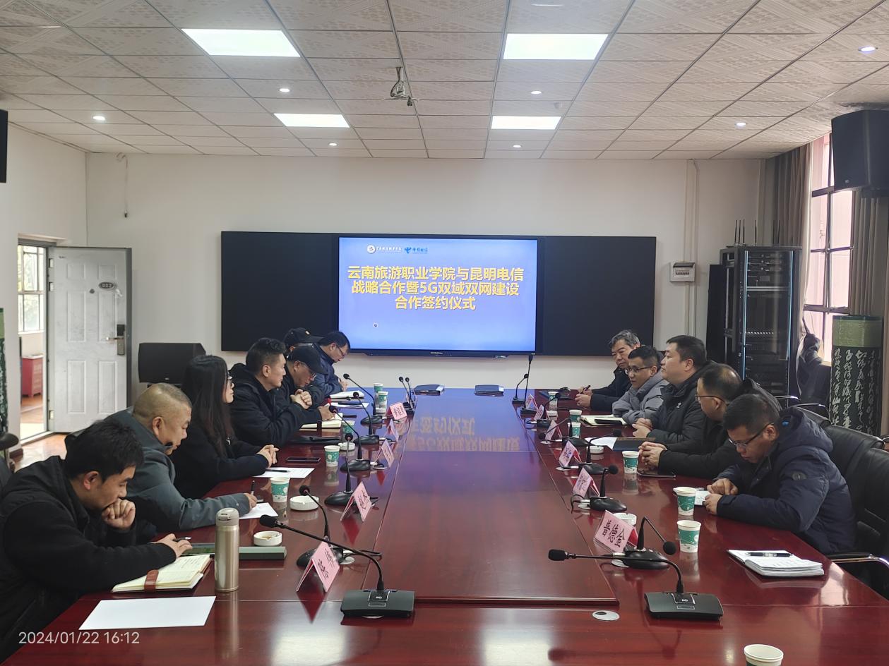 1月22日,伟德与中国电信股份有限公司昆明分公司在酒店实训楼三楼会议室签订战略合作暨5G双域双网建设合作协议。未来将通过打造“5G+智慧校园”,充分发挥物联网、大数据、人工智能等技术优势,打造全新智慧校园场景,为广大师生提供更高效、更便捷、更个性化的教育服务,优化教学模式。