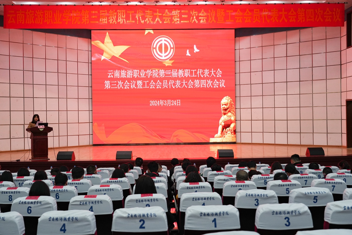 他强调,2024年是中华人民共和国成立75周年,也是学院发展历史上极为关键的一年。关键之年,须要关键担当、更要有关键作为。就贯彻落实好本次会议精神,凝心聚力推进学院高质量发展,他提出了四点要求:一是要突出党建领航,坚持和加强党对学院工作的全面领导。要充分发挥党建引领和党的政治核心作用,切实履行好各级党组织把方向、管大局、带队伍、保落实的职责,抓紧抓实基层党组织建设,全力塑造一支讲政治、素质高、业务精、作风好的干部职工队伍;二是要突出特色发展,全力以赴推进省级高水平职业院校建设。要深入学习贯彻全国两会精神,认真学习领会“新质生产力”的内涵要义,牢固树立“全面质量管理”理念,在加快构建现代职业教育体系的进程中,不断对标云南省三大经济和十二大重点产业的发展;三是要强化“严”“实”作风,扎实推动年度目标任务落地见效。要树牢“旅院发展命运共同体意识”,以推动学院高质量发展为己任,把自己的“小岗位”无缝链接学院的“大任务”,主动唱响敢为、勤为、善为的奋进“三部曲”,用个人成长量的积累奠基学院事业发展质的飞跃;四是要汇聚众智众力,在深化民主管理中展现发展新气象。要进一步总结凝练具有旅院特色的“枫桥经验”,构建人人参与、人人负责、人人奉献、人人共享的旅院治理共同体。
