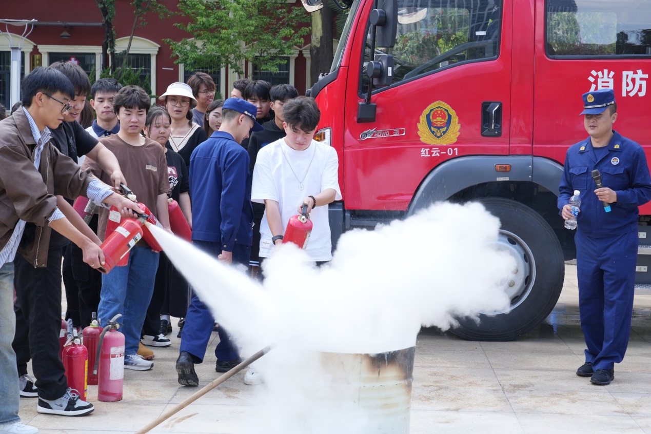 最后,全校各班级安全委员、部分学生代表及安保人员参加了灭火器及消防栓的使用实操培训。通过培训使同学们提升了应急处置能力,掌握了正确的火灾应对方式,真正做到“人人讲安全、个个会应急”。