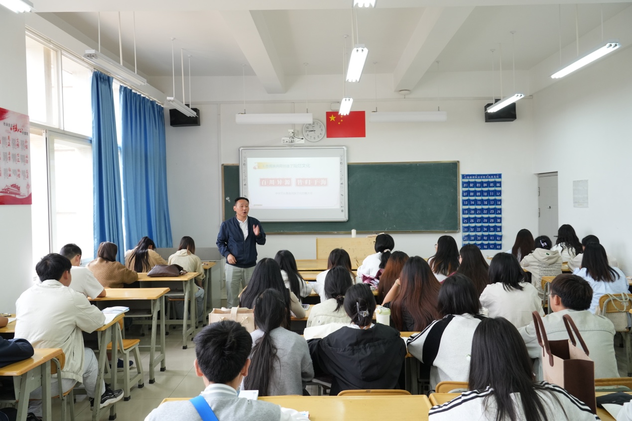 课堂上,党委书记王翔,党委副书记、院长蔡冰,党委副书记王敏,结合云南省实际情况,围绕中华民族共同体意识的丰富内涵、历史背景、实践路径等内容进行了深入浅出的讲解,王翔书记从历史和现实的角度,深刻剖析了中华民族共同体意识的形成和发展过程,明确“五个认同”、树立“四个共同”,根植“四个与共”,把握好“四对关系”的重要性,强调这些内容在中华民族历史上的重要作用;蔡冰院长从文化传承与创新的视角,阐述了中华文化的传承与创新在铸牢中华民族共同体意识中的重要作用,呼吁大家要珍视和传承好中华优秀传统文化;王敏副书记结合当前形势,讲述了加强民族团结、促进民族共同繁荣的具体措施和实践路径。三位校领导鼓励学生们要坚定理想信念,积极投身实现中华民族伟大复兴的中国梦,在迈上第二个百年奋斗目标的新征程中不负时代,不负韶华,不负党和人民的殷切期望。
