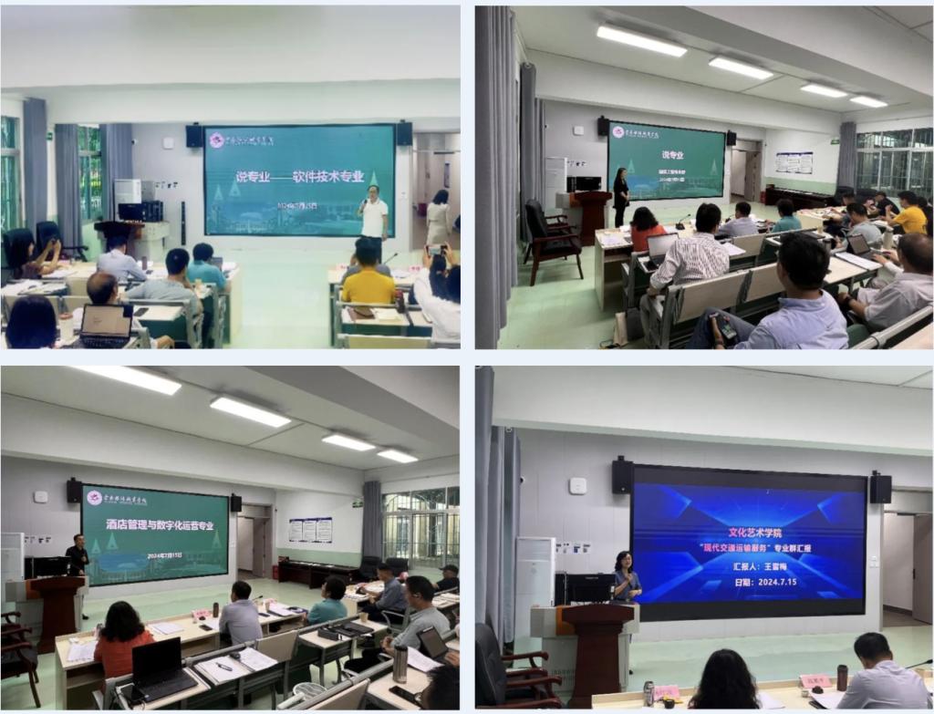 会上,8位二级学院负责人轮番上阵,围绕各自学院的优势专业,从发展历程、建设成就、特色亮点、师资构成、现存短板及未来规划等多个维度进行了全面而深入的阐述,同时就专业群组群逻辑、建设策略及专业设置调整计划等核心议题展开了深入交流。