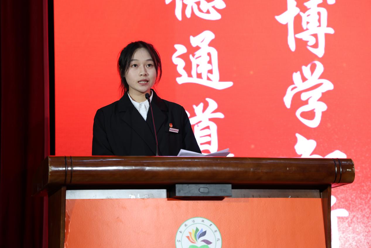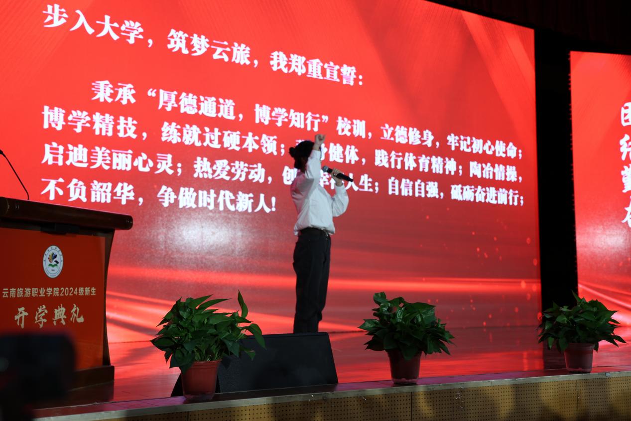 来自大数据与财管2401班的新生代表周佳忆同学带领2024级全体新生举行庄严的学习宣誓仪式。