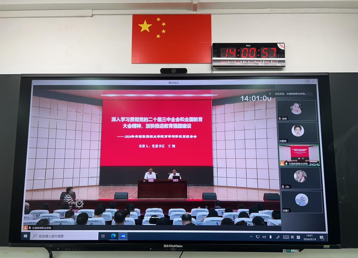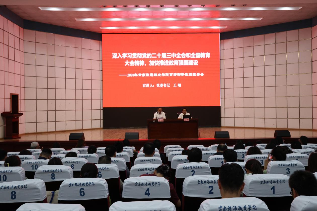 9月18日,伟德在报告厅举行2024年云南省高校百场形势政策报告会,学院党委书记王翔以“深入学习贯彻党的二十届三中全会和全国教育大会精神,加快推进教育强国建设”为题,为全校师生专题宣讲党的二十届三中全会和全国教育大会精神,报告会由党委副书记王敏主持。