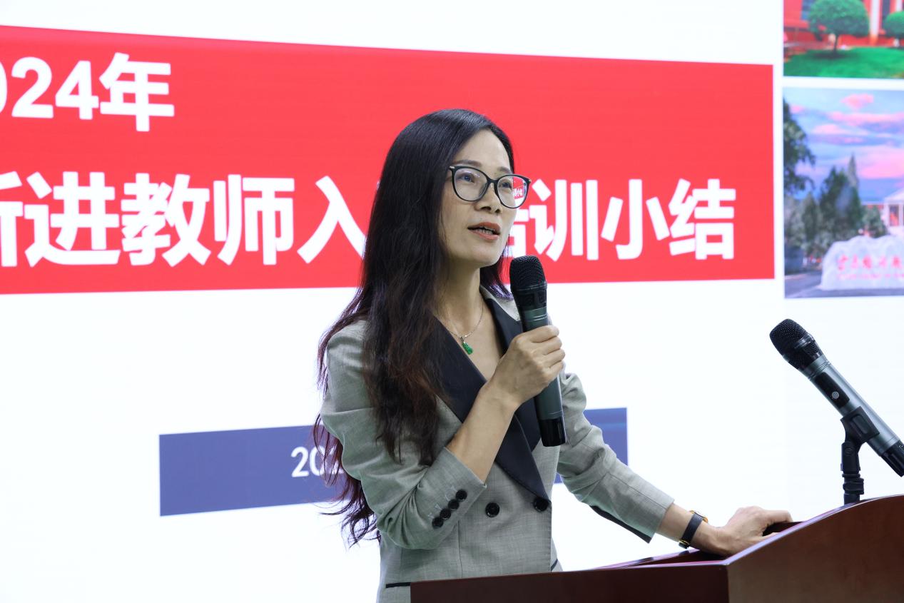 王霞副院长在结业典礼上做总结发言,她用“双向奔赴”和“全力融入”两个词表达了对新入职教师的欢迎和期望,以“紧、实、高、严、强”五字概括了本次培训特点,并希望全体教师团结一心、勉力躬行,共同为学校发展贡献力量、成就梦想。