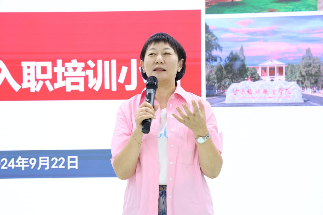 杨红英副院长在结业典礼上讲话时对新进教师表示祝贺及欢迎,对老师们在培训期间表现出的严守纪律和严谨学风给予肯定,并号召新教师以感恩心态,把工作当作事业,积极投身学校发展。