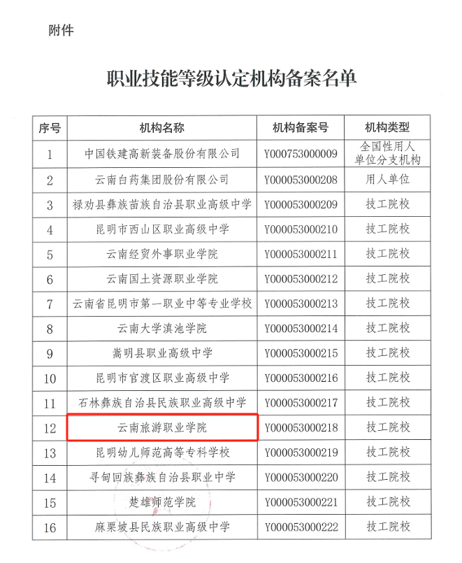 近日,从云南省职业技能鉴定中心获悉,经伟德申报、昆明市职业技能培训与鉴定指导中心评估,云南省人力资源和社会保障厅委托云南省职业技能鉴定中心审核同意,bevictor伟德国际1946官网申报云南省职业技能等级认定用人单位评价机构备案成功,可以按要求开展职业技能等级认定工作。