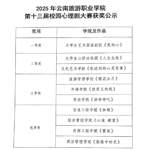 本次大赛特邀昆明理工大学汪杨皓老师、云南财经大学冉博文老师、昆明冶金学院潘亚姝老师组成专业评委团,汪杨皓老师代表评审组对此次大赛进行了点评,对选手们的创意编排和深刻演绎给予高度评价,认为剧目“既贴近学生生活,又兼具艺术性与教育意义”。