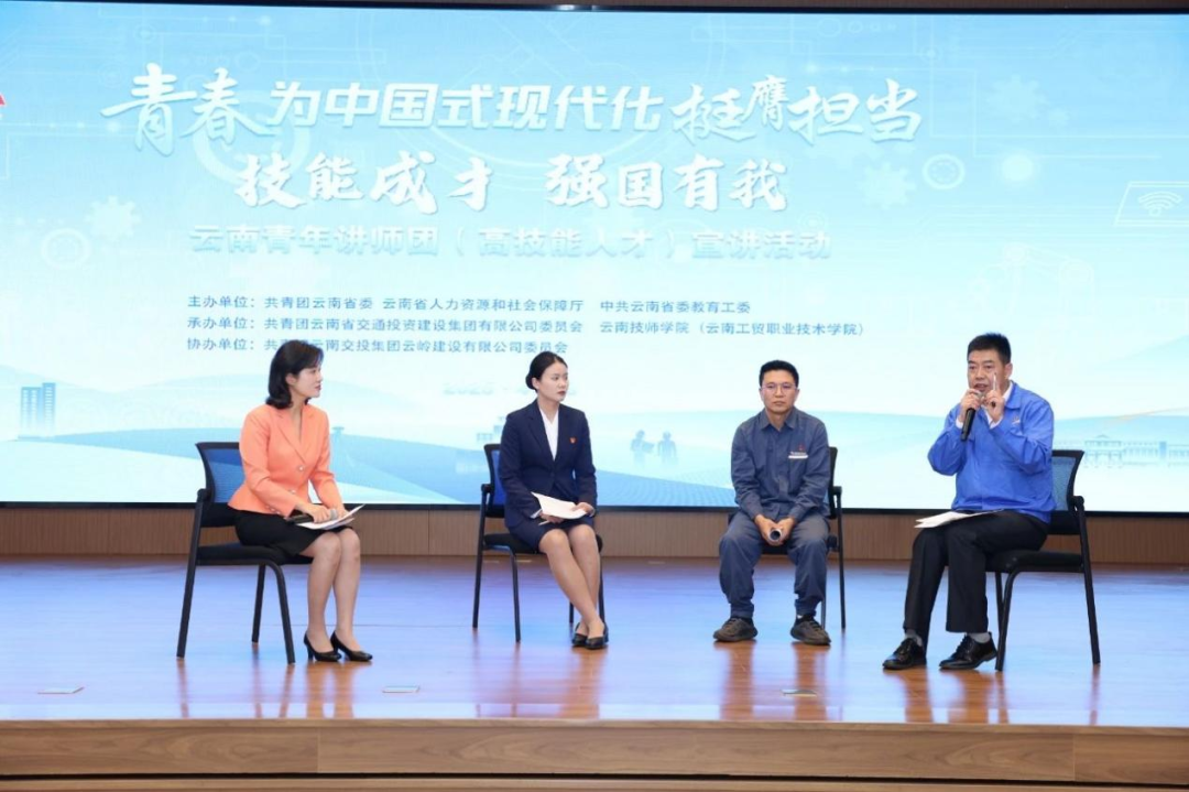 近日,云南青年讲师团(高技能人才)宣讲活动走进云南交投集团,作为全省唯一学生代表,伟德酒店管理学院2022级优秀学子矣金莉同学以“技能成才 强国有我”为主题,向150余名企业青年分享了她的成长故事,与青年们互动交流。