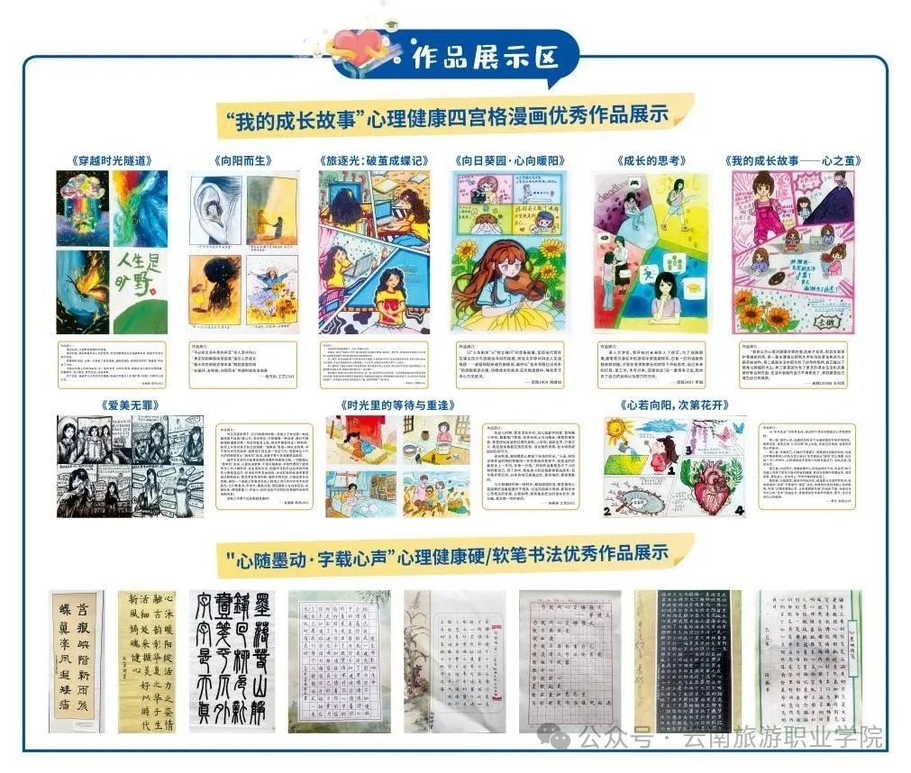 本次活动共吸引近千名师生共同参与,内容包含“心理健康手掌许愿树”、功能室打卡体验、学生书法竞赛作品展示、曼陀罗心理健康绘画疗愈等各类活动,通过可视化的情绪管理工具,让广大师生在体验、创作中实现情感疏导与自我认知。