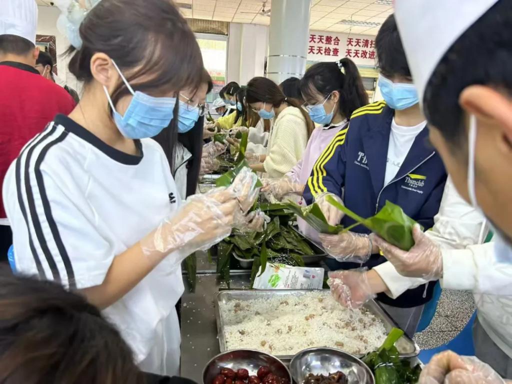 在“端午粽香·爱心传递”活动环节,80余名学生志愿者与食堂人员在专业师傅指导下学习包粽子。折叶、填馅、绕绳,大家手法渐熟,棱角分明的粽子逐渐成型。志愿者将蒸煮好的粽子分装后分别送给同学们,2023级学生毛永浩文表示:“收到亲手包的粽子,感觉家就在身边。”活动让大家在实践中感受传统文化魅力,传递校园关怀。