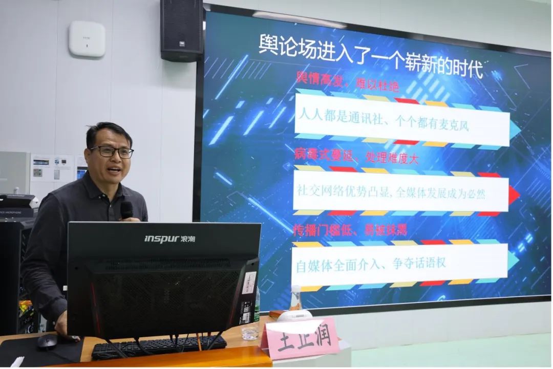 第二阶段的培训由新华社中国经济信息社舆情监测中心高级分析师、主任王正润担任,他以“新媒体环境下舆论场特征与处置”为题展开,通过大量详实、生动的典型案例分析,分析了新时代舆论场规律特征、舆论传播四大定律,高校类舆情热点、对症下药处置舆情危机、与媒体打交道的技巧与实务等内容,深入剖析了近年来高校宣传和新闻发布中的各类风险表现,详细阐释高校宣传工作的特殊性,明确内容发布红线,以及舆论场规律特征给舆情应对处置带来的风险挑战,助力伟德营造清朗舆论环境。