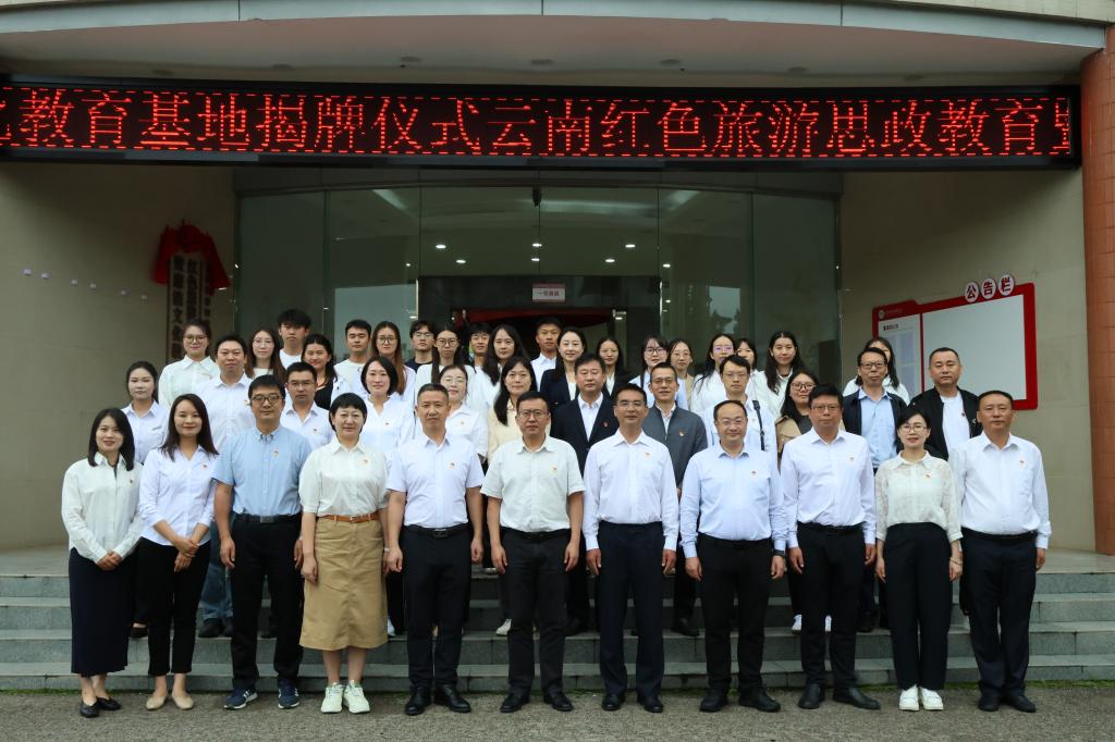 在热烈的掌声中,王翔书记与昆明市旅游职业高级中学党总支书记张雪涛、昆明市五华区龙泉路小学党支部书记李春祥共同为“云南红色旅游思政教育暨廉洁文化教育基地”揭牌。