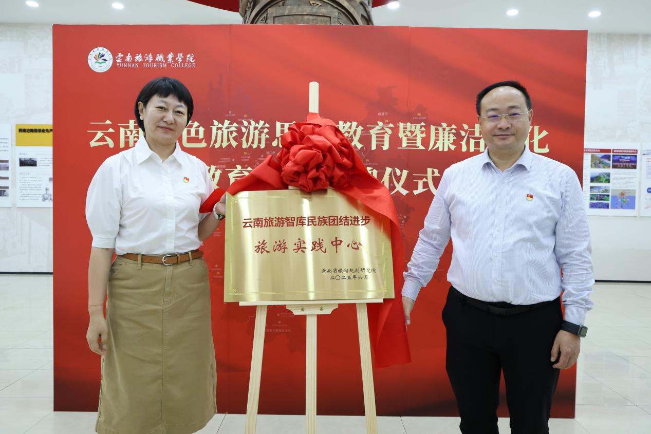 杨红英副院长与符继红副院长为“云南旅游智库民族团结进步旅游实践中心”揭牌,该中心将聚焦云南多民族文化与旅游产业的深度融合,服务地方经济发展与民族团结进步事业,通过开展丰富多样的实践活动,建成集“教学实践、文化传承、产业服务”于一体的省级学术平台,助力培养具备民族文化素养与旅游专业技能的复合型人才。