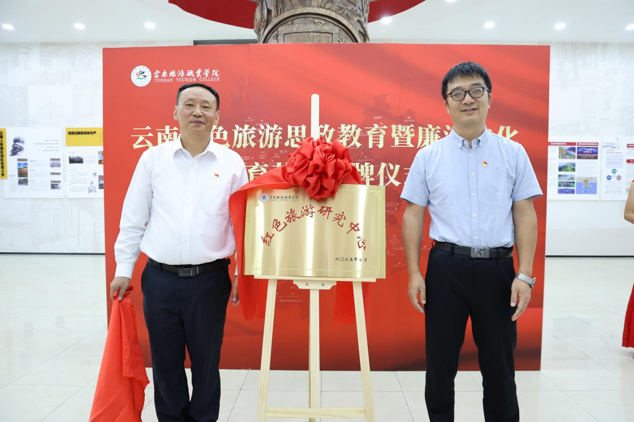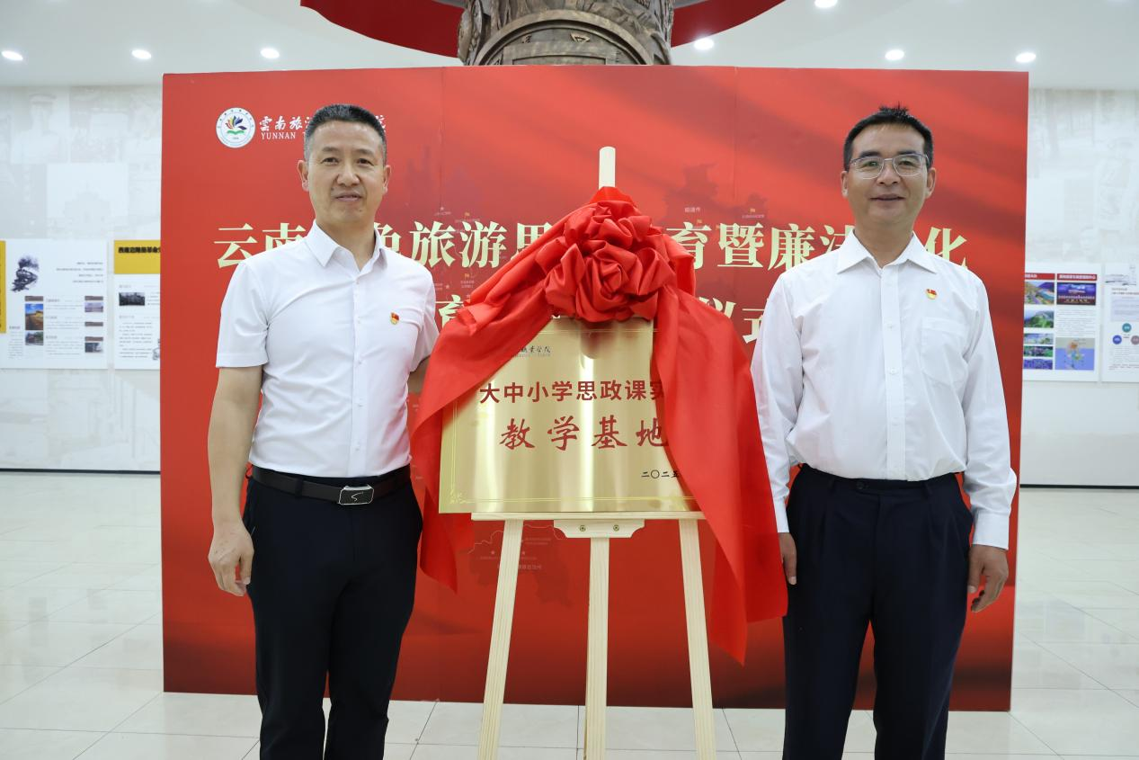 仪式上,王翔书记与昆明市旅游职业高级中学党总支书记张雪涛、昆明市五华区龙泉路小学党支部书记李春祥共同为“云南红色旅游思政教育暨廉洁文化教育基地”揭牌。