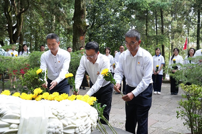 在《义勇军进行曲》高亢激昂的乐声中,在场全体师生一一向聂耳墓敬献鲜花,表达对伟大中国革命音乐家的追思与致敬。