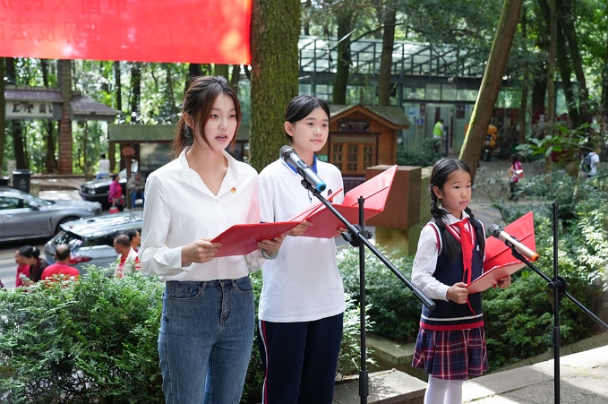 随后,全体师生绕行瞻仰纪念碑,阅读碑文,聆听讲解,追忆历史,在亲看亲学中体悟伟大抗战精神。
