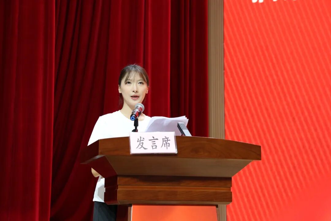 经济管理学院副院长何璐作为教师代表上台发言,她以四份期待为主线,从“动手能力、自律能力、抗压能力、为人处世”四个方面给新生提出希望,并鼓励同学们靠一技之长站稳脚跟、实现个人价值,不断突破自我,实现精彩人生。