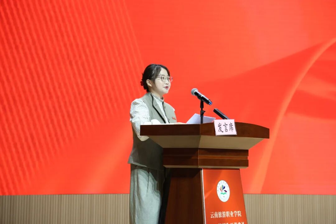 党委副书记、院长蔡冰以“从七秩校史中汲取力量 在青春赛道上奋勇争先”为题,从“辉煌的昨天”“奋斗的今天”和“灿烂的明天”三个维度,结合学校不同时期的杰出校友和优秀毕业生事迹,向新同学们介绍了学校的历史沿革、发展现状及未来发展目标,并指出,“一技在身,百业可为”,他勉励2025级新同学们要立足云南,胸怀祖国,放眼世界,无论身处何种岗位,都要秉持服务至上、诚信为本的理念,以优质的服务体验展示中国形象、云南魅力,为擦亮云南旅游金字招牌、建设旅游强国、实现中华民族的伟大复兴贡献自己的青春力量!