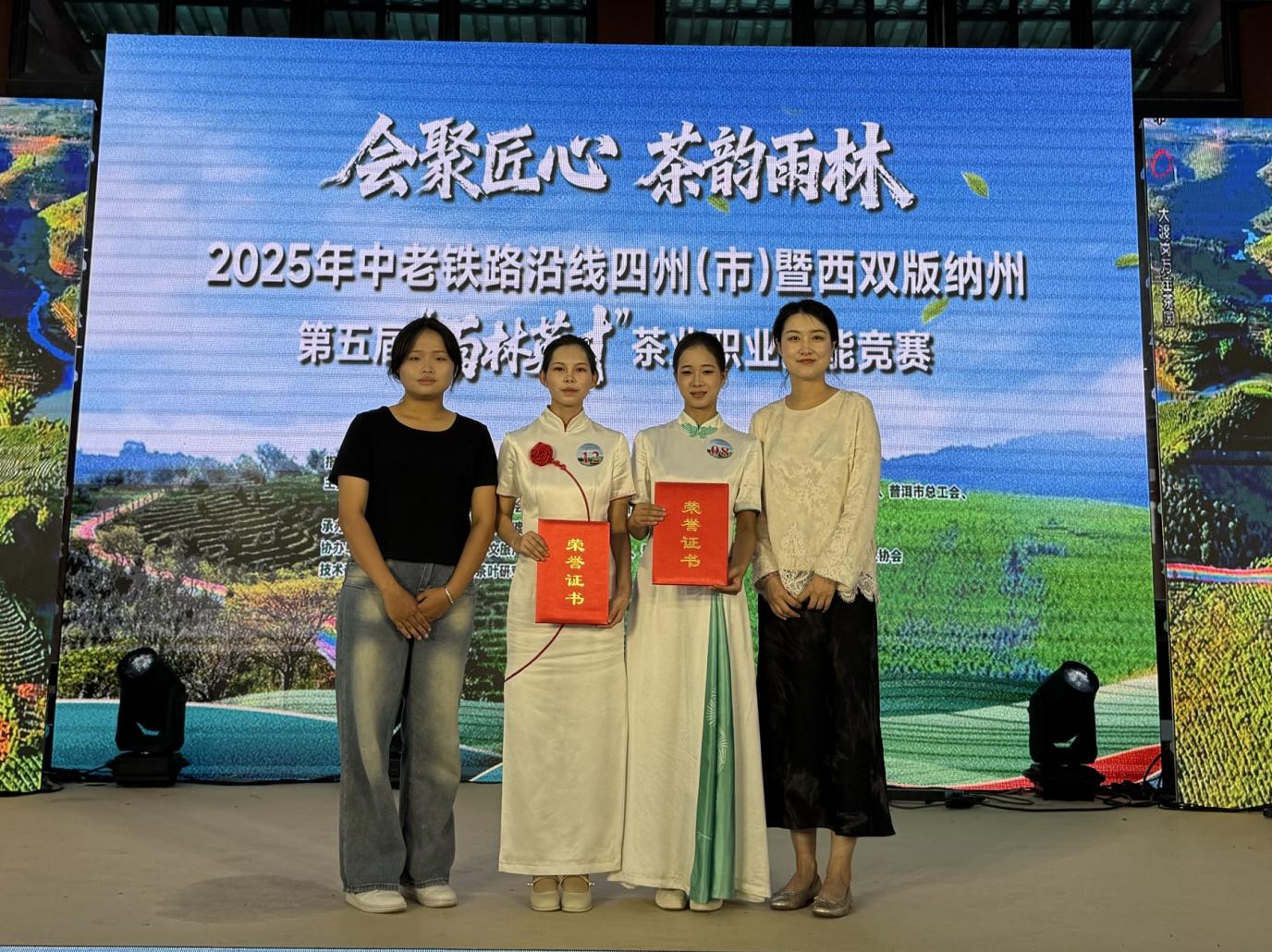 9月25日,中老铁路沿线四州(市)茶业职业技能竞赛在西双版纳景洪市大渡岗乡圆满落幕。伟德茶艺专业宋青青、段尚娇两位同学在专业带头人冯骏宁老师的指导下,凭借扎实的专业素养与出色的创新能力,斩获茶艺师竞赛2个三等奖。
