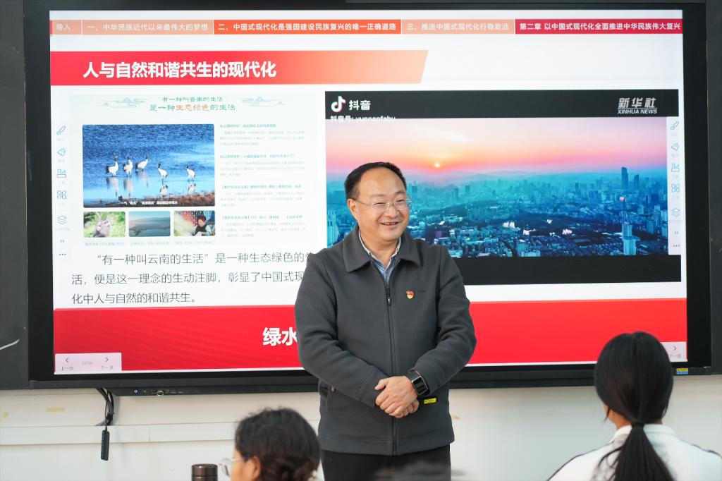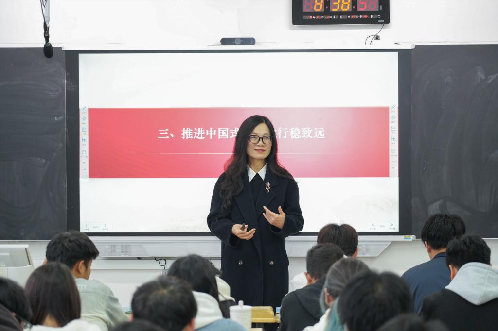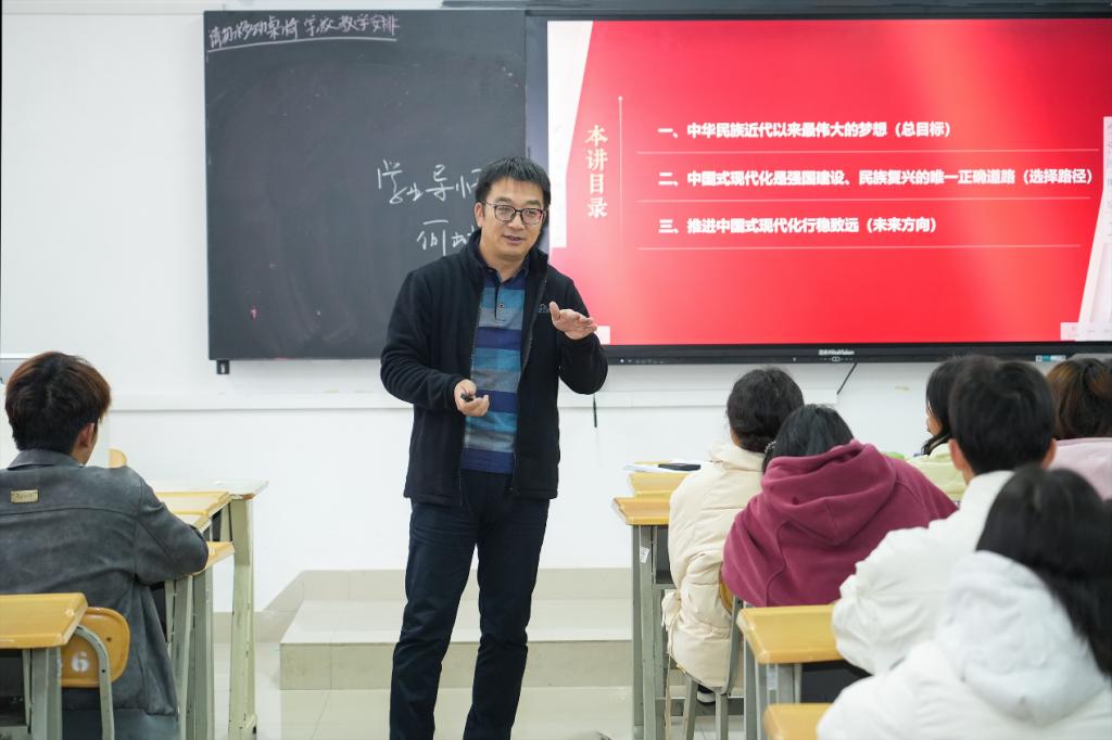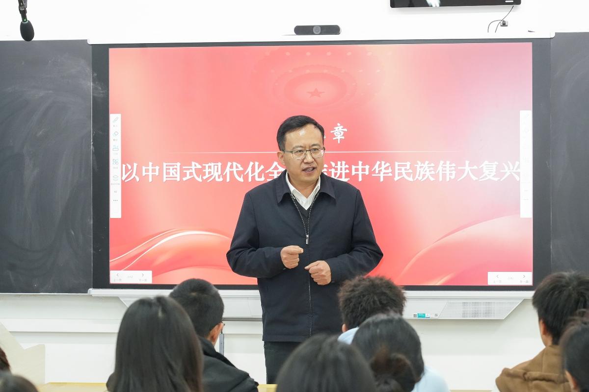 其他校领导、党委委员结合时事热点和生活实际,围绕以中国式现代化全面推进强国建设取得的历史性成就、推进中国式现代化行稳致远等主题,用生动的语言、真实的事例,为同学们讲授了一堂堂既有思想深度,又具情感温度的思政课,赢得了同学们的热烈反响。大家纷纷表示,通过这堂课,不仅加深了对习近平新时代中国特色社会主义思想的理解,更增强了对中国式现代化的认同感与使命感,今后将以更加昂扬的姿态投身学习与实践,为实现中华民族伟大复兴贡献青春力量。