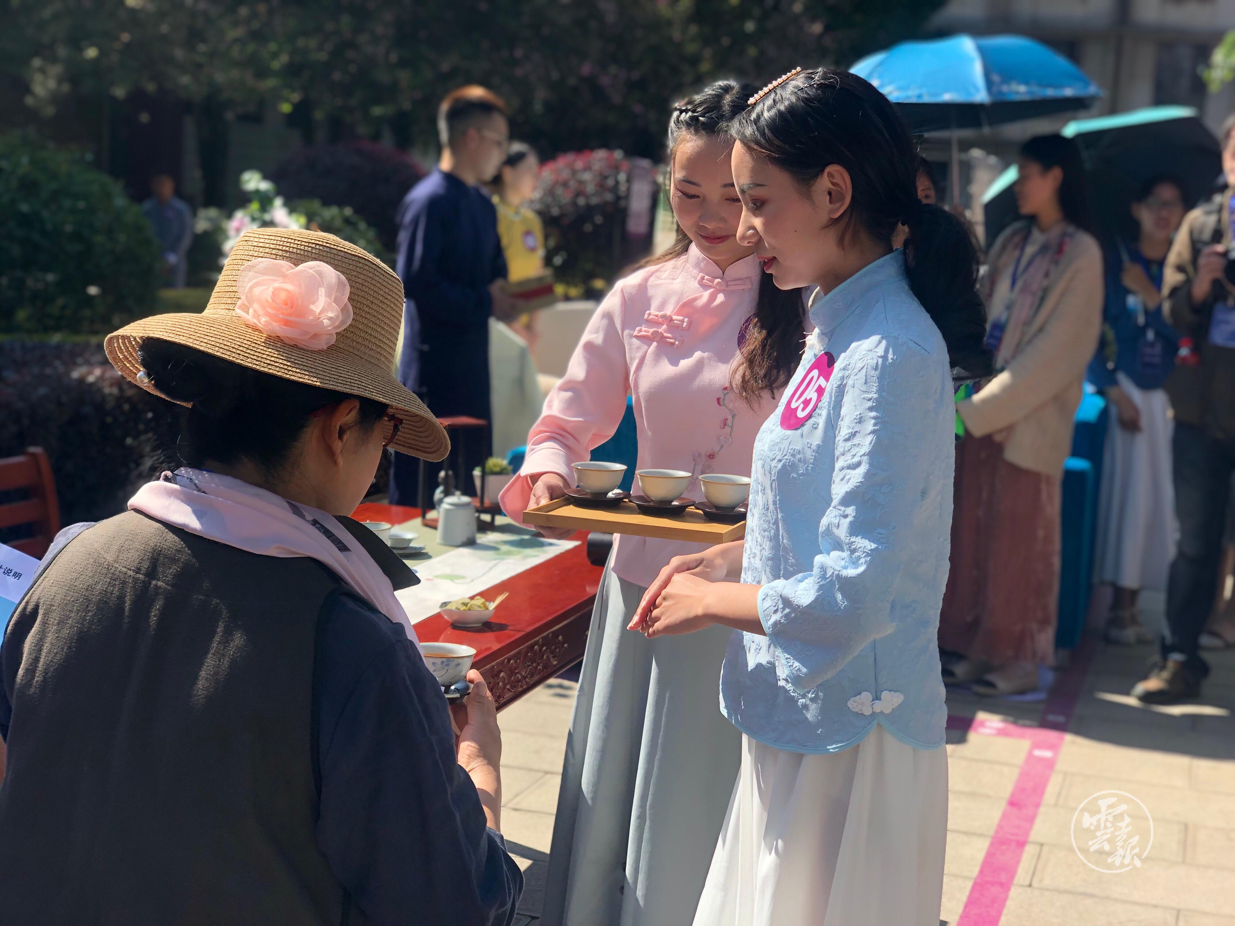 “我今天茶艺展示的主题是‘拈花一笑’,利用莲花等布景突出禅意”,来自玉溪农业职业技术学院的周芳介绍。今年刚满20岁的她,是农产品检测专业的学生。因为喜欢茶,向往茶文化,她利用课余时间报名参加了校内的茶艺培训,取得了中级茶艺师证。“这次参赛切磋技艺的同时,认识了不少爱茶的新朋友,很有收获。”