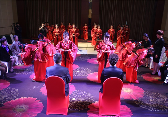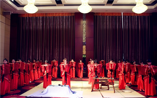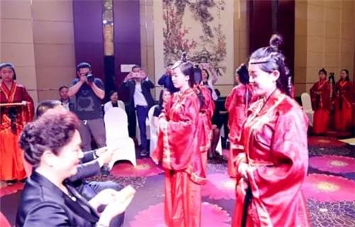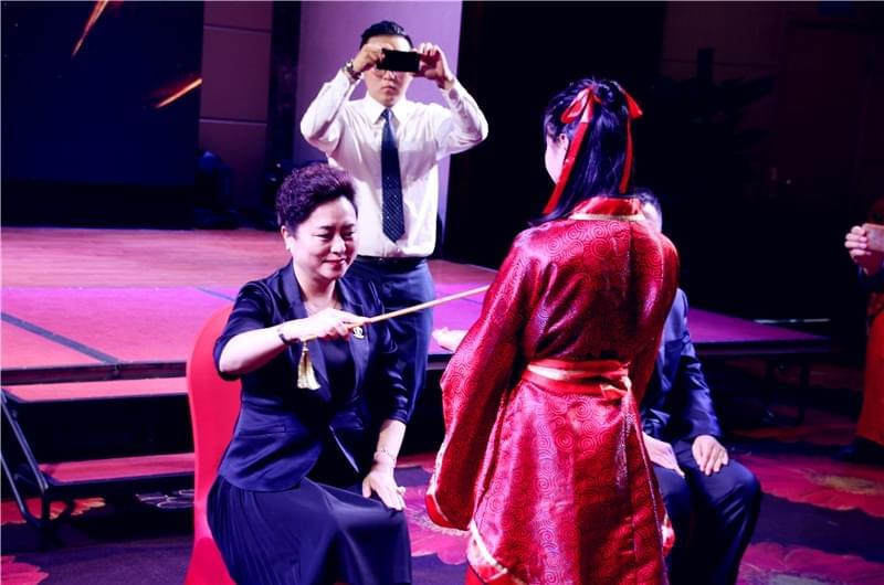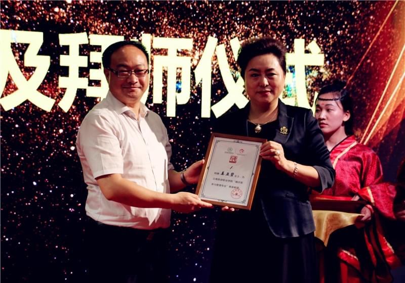 该仪式在“玺尊龙订单班”的香道及茶艺表演中开始,姜亚碧会长和符继红副校长分别致辞,并签订了校企合作暨现代学徒制人才培养合作协议。根据协议,企业为校方设立了“玺尊龙教育基金”并捐赠了一批专业书籍,向订单班学员颁发名牌;符继红副校长和杨红波院长向姜亚碧会长等企业专家颁发了客座教授聘书和企业导师名牌。现场,姜亚碧、吴峰等6位导师代表,接受了“玺尊龙订单班”同学的拜师礼、束脩礼、释菜礼、惩罚礼、奉茶礼,完成了拜师仪式。