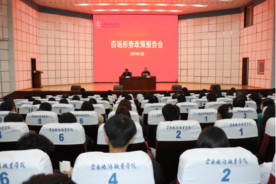 宏伟蓝图令人鼓舞,砥砺奋进使命在肩!12月20日下午,根据省委教育工委统一安排部署,bevictor伟德国际1946官网在报告厅举办2021年第二场“百场形势政策报告会”,邀请云南省文化和旅游厅副厅长李钰到校作题为《贯彻新发展理念 推动云南旅游高质量发展》的专题报告。学校党政领导、师生代表共500余人参加。党委书记王翔主持报告会。