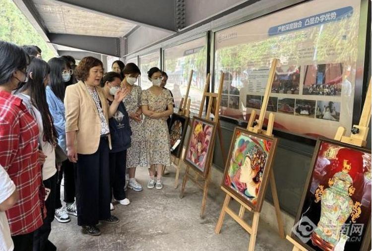 活动周首日,非遗技艺走进文化艺术学院。昆明市非物质文化遗产掐丝珐琅第六代传承人邓璧玲认真讲述掐丝珐琅彩画的起源和发展历程,技艺起源于广东汕头,由掐丝珐琅工艺发展而来。周边摆放的作品吸引很多学生驻足观看,金属丝打造工笔画线条,矿物质珐琅釉料填色,色质艳丽,釉沙粒粒清晰,有着浅浮雕的美感,大伙纷纷开始学习制作。