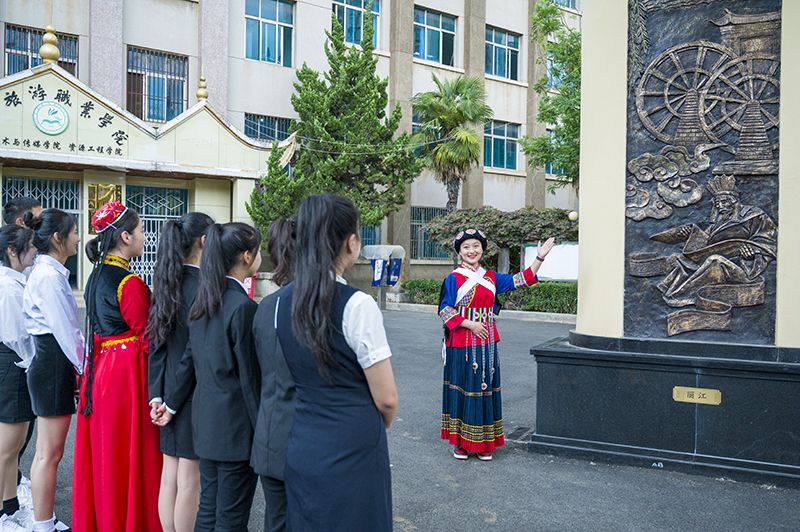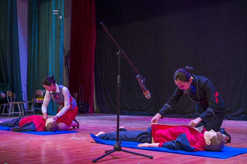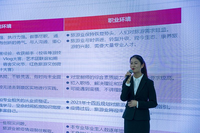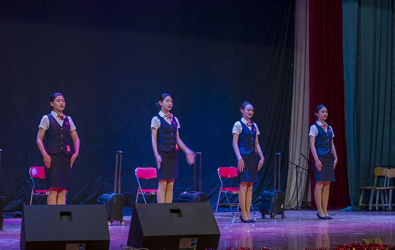在众多技能展示项目中,自助购票、安检、候车、刷脸乘车,在学校高铁站房实训室和高铁模拟舱内有序进行着,身着高铁乘务制服的学生为参观者提供了乘坐高铁的全程体验服务,展示了高速铁路客运乘务专业学生的专业能力。和高铁乘务一样,空中乘务对从业人员有着很高的服务要求,需要空中乘务员在高空飞行的过程中为旅客提供专业服务。为更好展现空乘专业的教学成果,学院今年举行了“云旅杯”空中乘务技能大赛。空乘职业形象展示、机上安全演示、机上急救现场中文知识问答等丰富的比赛环节,充分展现了参赛选手的专业能力及面对突发情况时的应变能力。