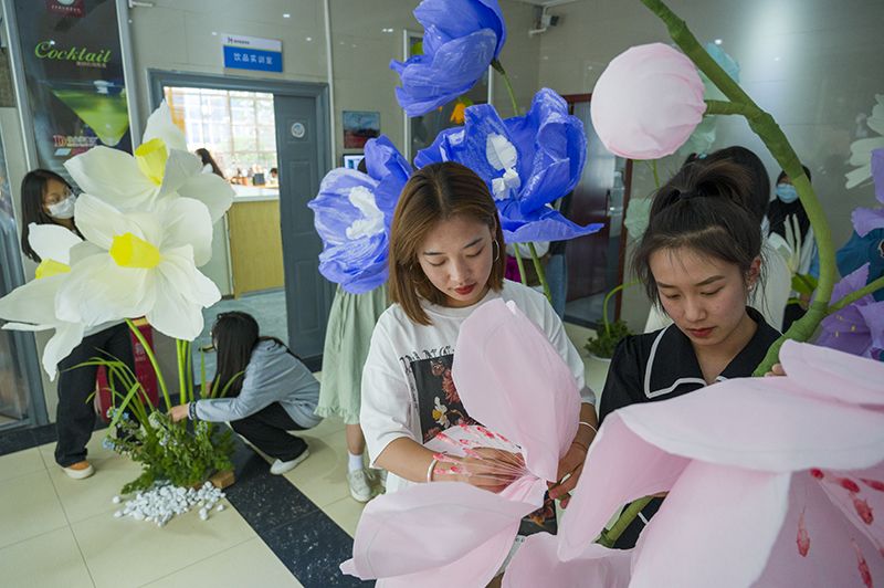 不仅如此,活动周期间,学院的各学生社团还拿出了花艺、茶艺、珠宝鉴定、点钞、辩钞、烹饪等技能,展示十八般武艺,校园内百花齐放,争奇斗艳。“商战模拟体验”、“电商直播体验” 等专题活动,在展示自己职业技能和学校职业教育成果的同时,将技能成果通过创新创业平台进行现场营销。
