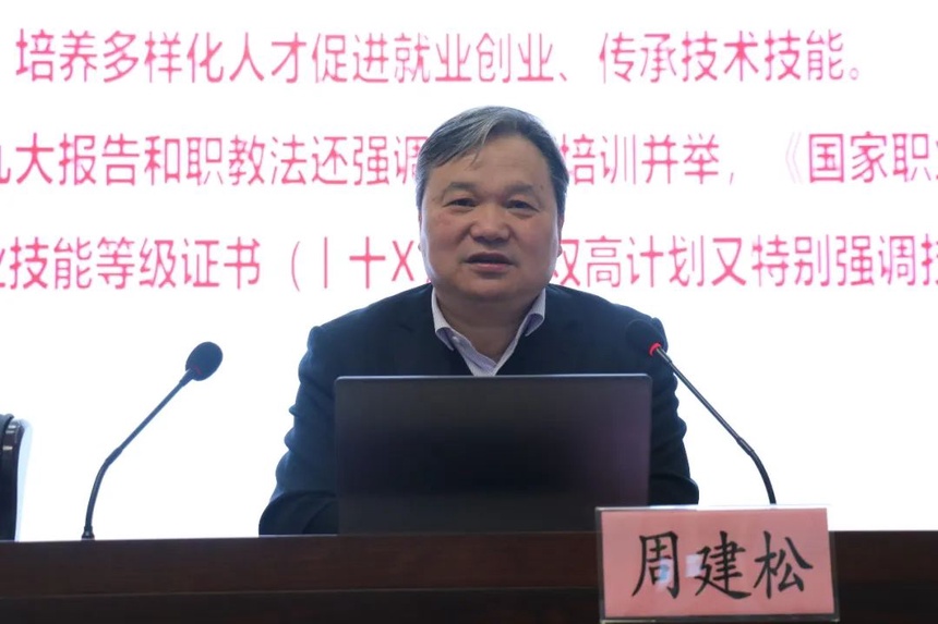 周建松教授以“怎样办一所高质量高水平高等职业学校”为题,从正确合理定位、尊重办学主体、把握办学特点、培育质量文化、争创特色品牌、锻炼过硬队伍等六方面进行了详细阐述。他表示,我国高等职业教育经过四十多年的探索和实践,经历了徘徊摸索、定位发展、规模扩张、内涵建设、特色打造等不同阶段,目前已进入体系构建。他指出,每一所高职院校,都要顺应时代、研究自我、提高自我,并结合浙江金融职业学院的发展、探索和实践,分享了高职院校办学定位、发展理念、品牌特色的典型经验和做法。他提出,高职教育高质量发展是时代所需、基层所盼、民心所向,并勉励大家要强化主人翁责任感,强化新时代使命感,增强当代人紧迫感,实现职业教育大有可为、大有作为。