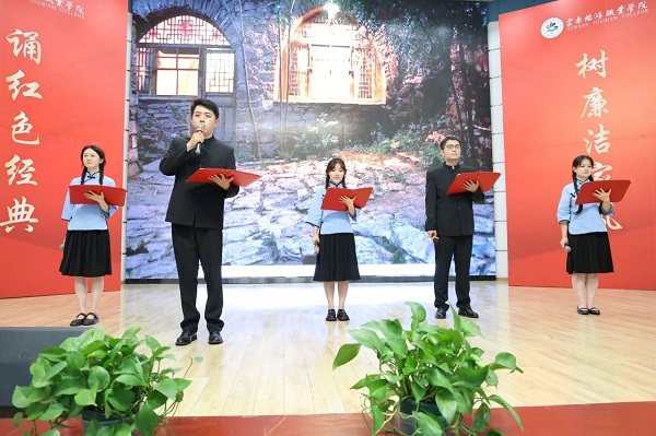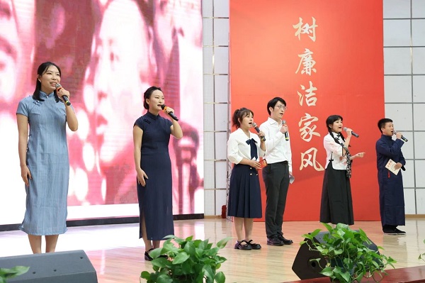 “家风,从五千年的文明深处走来,带着历史的芬芳家风,如旖旎的春风,自血脉之初浩荡飘浮,绵延至今……”,教职工们深情讲述多个家风故事,《红色薪火:李大钊的家风传承》《树红色家风·创美好未来》《“两弹元勋”邓稼先家风故事》《山河岁月·生如夏花向警予》《清风徐来·廉洁家声》等朗诵节目轮番上演,一幕幕热血、温情的场景在讲述中鲜活起来,在场师生深受感染。