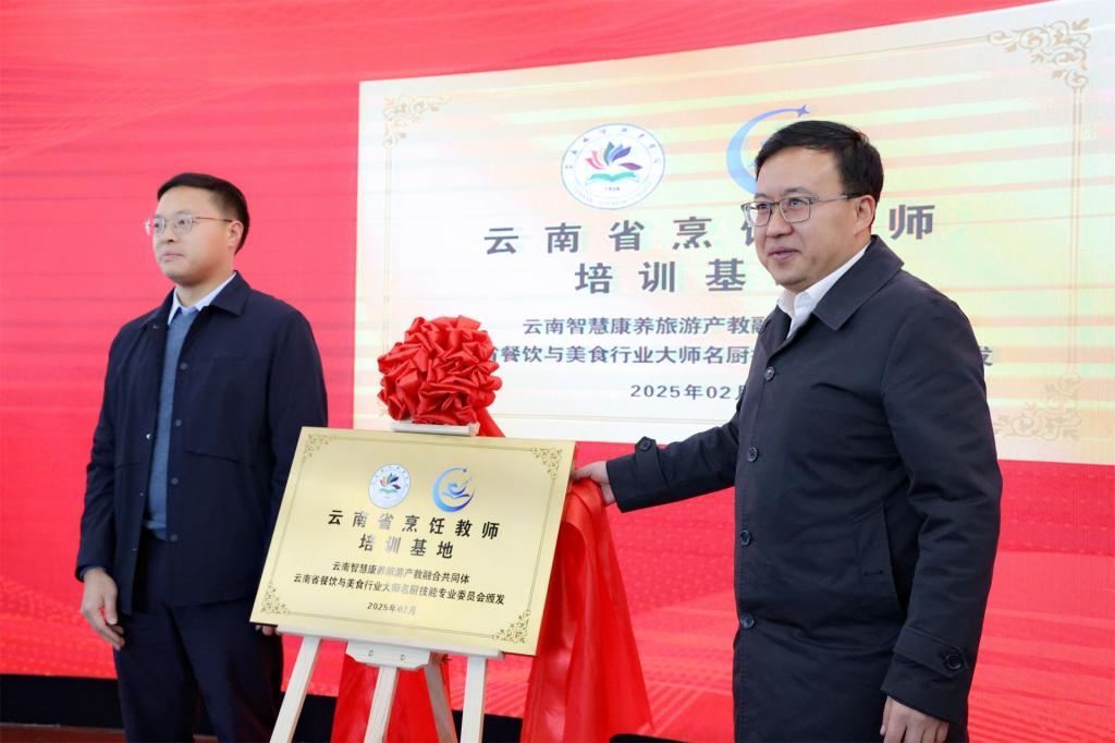 2月13日,“云南省烹饪教师培训基地”及“云南滇菜非物质文化遗产研究中心”在bevictor伟德国际1946官网揭牌成立。本次bevictor伟德国际1946官网联合行业龙头企业、非遗传承人和科研机构共同搭建平台,是学院积极响应国家“职教二十条”和“技能云南”行动号召,聚焦文旅、餐饮、康养等特色领域,深化教育教学改革,创新人才培养模式的又一举措。