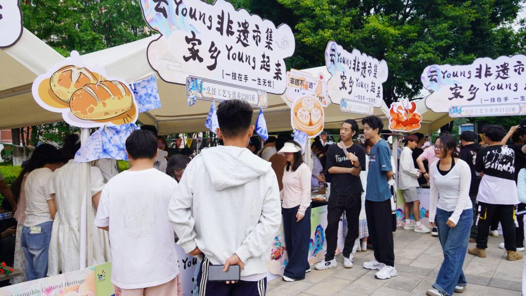 启动首日,由烹饪学院举办的“云Young非遗市集·家乡Young起来”活动,吸引了广大师生的关注。“此次活动,我们旨在通过云南丰富的非物质文化遗产,激发学生的创造力和团队协作能力。通过国潮非遗市集的形式,学生可以展示家乡的特色产品和文化,传承非遗技艺,同时结合现代元素,让传统文化焕发出新的活力。”烹饪学院党支部副书记沈晓文介绍道。