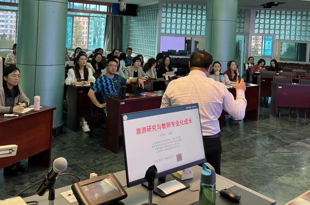 第一期“教师学术训练营”共有45名教师报名参加。在随后的学术指导环节,学院副院长符继红教授以“旅游研究与教师专业化成长”为主题,从学术研究应该“干什么”,以及“如何干”开始,启发训练营的教师们如何“借天时、占地利、谋人和”,并以自己完成的国家社科基金研究项目为例,分享了自己在旅游研究领域的学术心得。