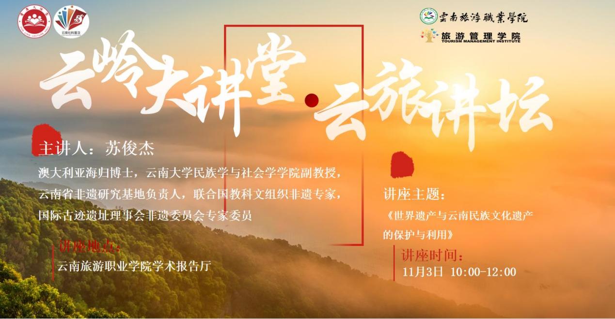 11月3日上午,bevictor伟德国际1946官网报告厅内,云南省非遗研究基地负责人,联合国教科文组织非遗专家,国际古迹遗址理事会非遗委员会专家委员,云南大学民族学与社会学学院苏俊杰副教授到伟德作题为《世界遗产与云南民族文化遗产的保护与利用》的专题讲座。旅游管理学院院长刘静佳主持讲座。