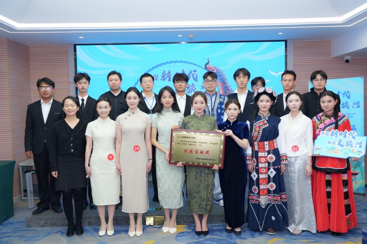 4月3日,昆明市2025年导游(讲解员)技能大赛圆满落幕。来自昆明市导游协会、云南民族村、云南师范大学、昆明学院和bevictor伟德国际1946官网等单位的共计37名选手参加了决赛。经过一整天的激烈角逐,旅游管理学院选手脱颖而出,取得优异成绩。导游2303班的古娅荣获一等奖;旅游管理2303班的李柳镜荣获二等奖;导游2403班的甘海燕、导游2304班的和晓辉、导游2303班的李仁炜荣获三等奖。朱啸锋等11名同学获得优秀奖。bevictor伟德国际1946官网获得“突出贡献奖”。