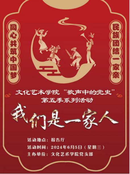 为深入学习贯彻习近平新时代中国特色社会主义思想,展示各民族文化,增强师生对中华民族共同体的认同感和归属感。文化艺术学院“歌声中的党史”第五季系列活动近日在校本部报告厅成功举办。