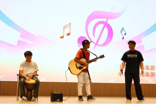 器乐演奏同样亮点频出。古筝、吉他、手鼓等乐器在学生们的指尖、鼓槌下,流淌出美妙旋律。古筝演奏者凭借精湛技艺,将传统音乐的韵味展现得淋漓尽致;节目《薅秧歌》的乐队合奏演唱,巧妙融合多种乐器,演奏出动感十足的音乐,瞬间将现场气氛推向高潮,让观众沉浸在音乐的世界中。