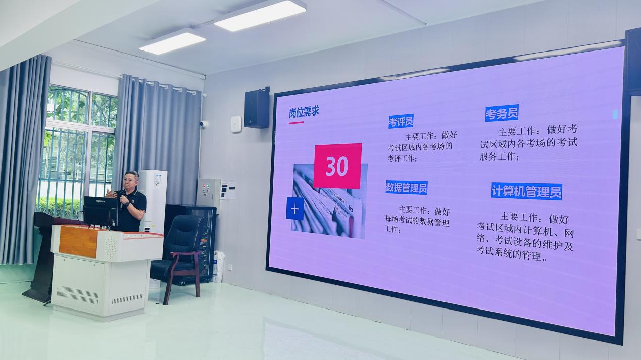 此次招聘宣讲会上,企业负责人王总表示公司目前可以提供包括数据管理员、考评员、考务员、培训预备讲师等岗位,接着向同学们详细介绍公司情况、各个岗位工作内容和薪资待遇。