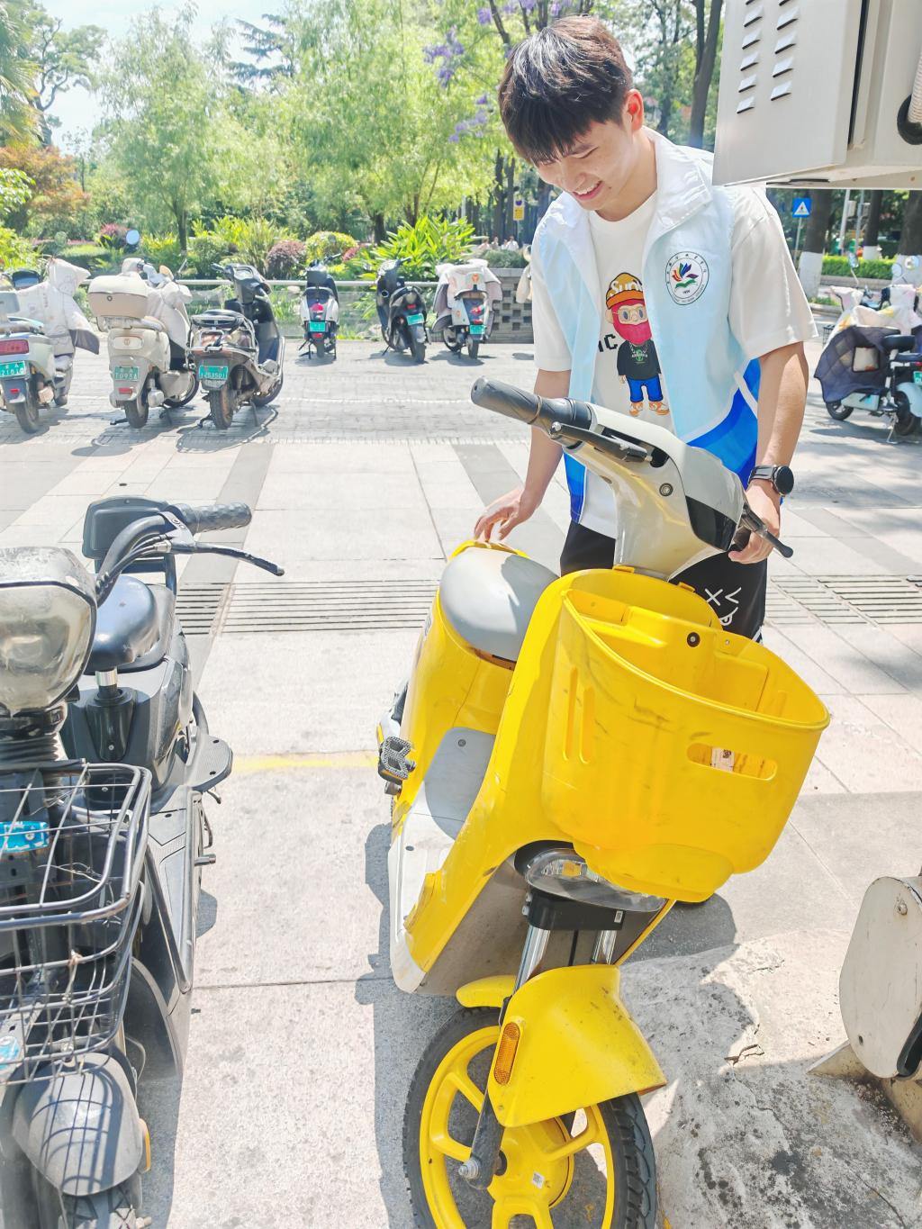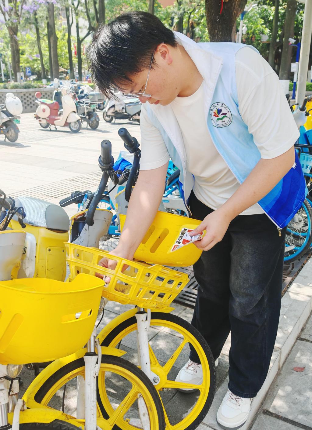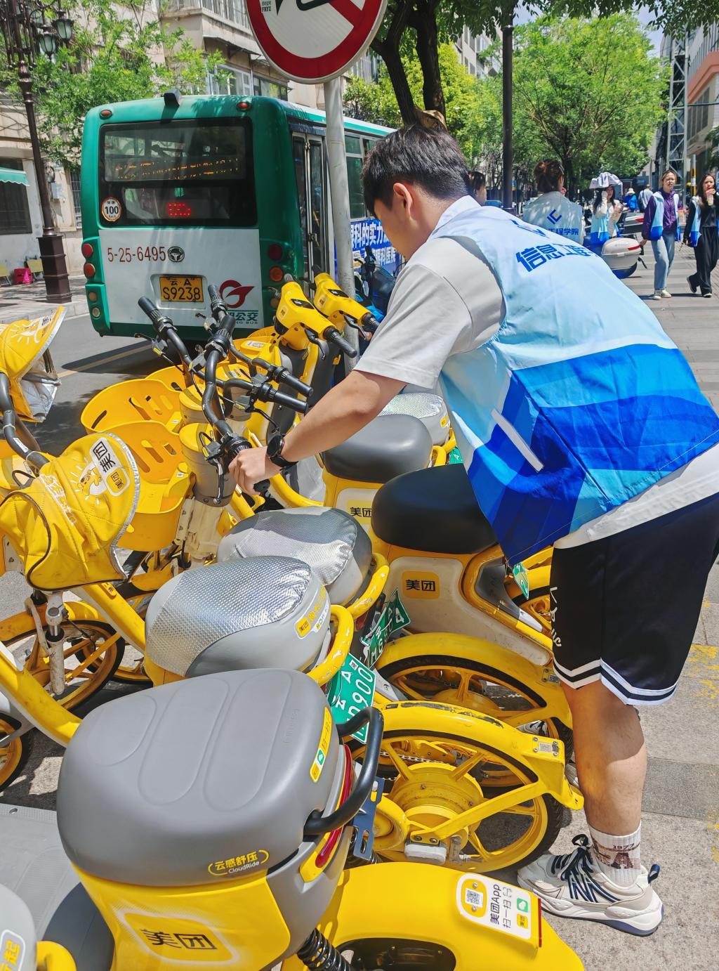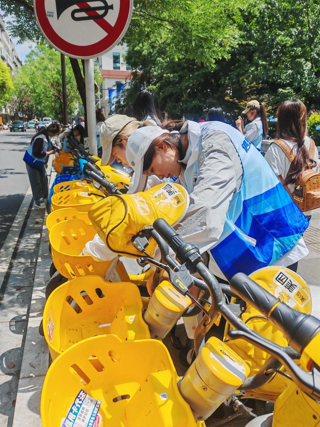 翠湖周边人流量大,共享单车使用频繁,但随意停放、车身贴满小广告等问题一直影响着市容市貌。活动现场,志愿者们分成两组,一组负责整理单车,将倒地的车辆扶正,把散乱停放的单车搬到指定区域,并按品牌和颜色整齐排列;另一组则拿着铲子、抹布等工具,仔细清理车身上的小广告。经过几个小时的忙碌,原本杂乱无章的共享单车停放点变得井然有序,单车也恢复了干净整洁的面貌。