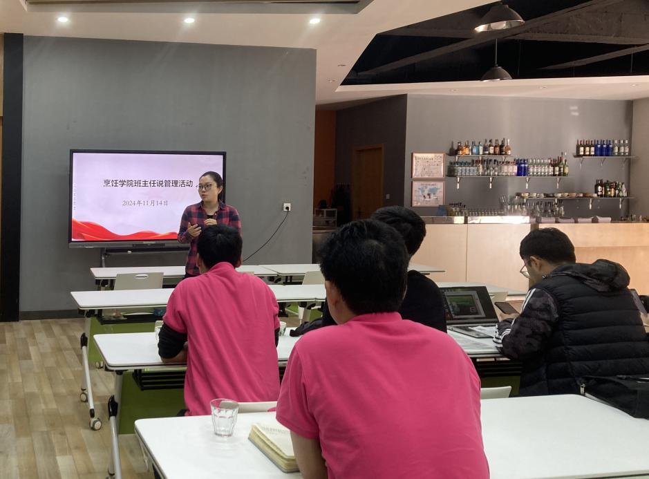 11月14日,烹饪学院在数字化咖啡实训室举行2024级新生班主任说管理活动以及2023级班主任经验交流会。本次活动旨在切实提升班主任的管理水平,加强班级管理经验的分享与交流促进班级管理水平提升。同时,特别邀请心理中心廖颜老师针对学生心理健康教育进行深入交流研讨,为学生的全面健康发展筑牢坚实基础。