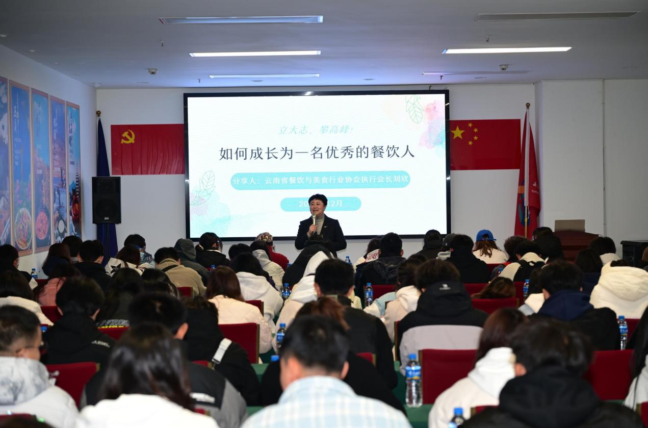 实习在云南省餐饮与美食行业协会执行会长刘欣老师的“行业启蒙”认知讲座中正式拉开序幕。昆明傲为世企业管理公司人力资源总监汪娜娜还与大家进行了职业生涯规划交流,助力同学们的职业发展。