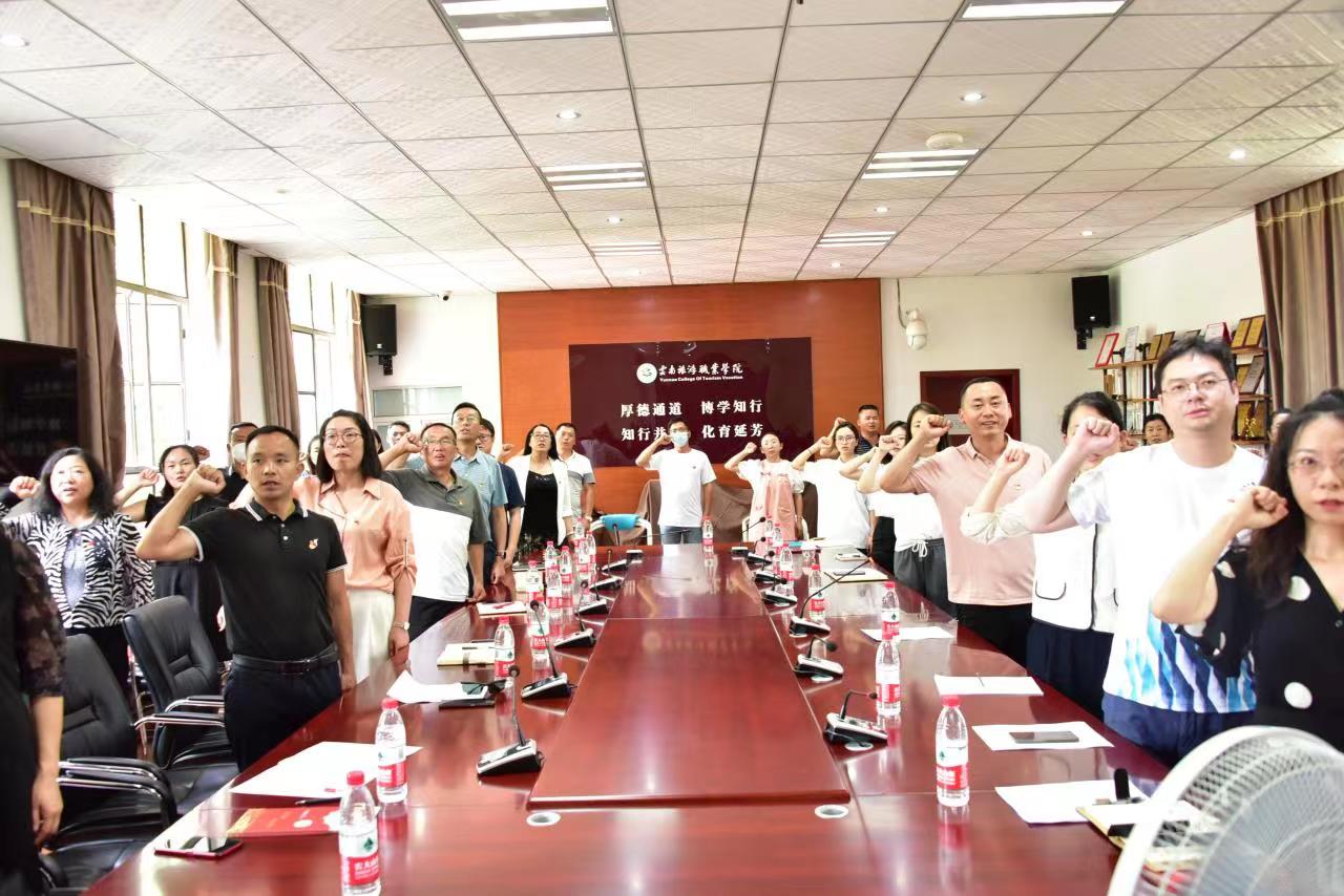 为深入学习贯彻党的二十大精神和进一步学习贯彻习近平新时代中国特色社会主义思想主题教育,弘扬非遗文化,引领全体党员干部职工思想,凝聚党支部战斗力量,2023年6月2日,酒店管理学院党支部和嵩明县教育体育局机关党支部联合在酒店实训楼开展了以“弘扬非遗文化展示技能风采”为主题的党日活动。嵩明县教育体育局机关党支部的20名党员和酒店管理学院全体党员参加本次活动。