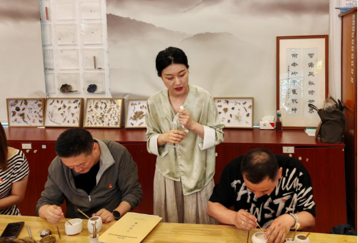 主题党日的第三个环节是非遗文化传习,由酒店管理学院冯骏宁老师带领大家学习中国传统篆香。冯骏宁老师现场讲解了篆香的历史渊源、文化内涵和制作工艺等知识,讲述中国人用香的历史、生活中常见的香品、日常用香的功效等,带领党员更加深入地了解香道文化的价值和意义,之后教授大家使用香炉、香勺等工具,体验了打香篆的过程,从选材、备料、制模到打篆、燃香,每一步都感受到了古人的智慧和匠心。