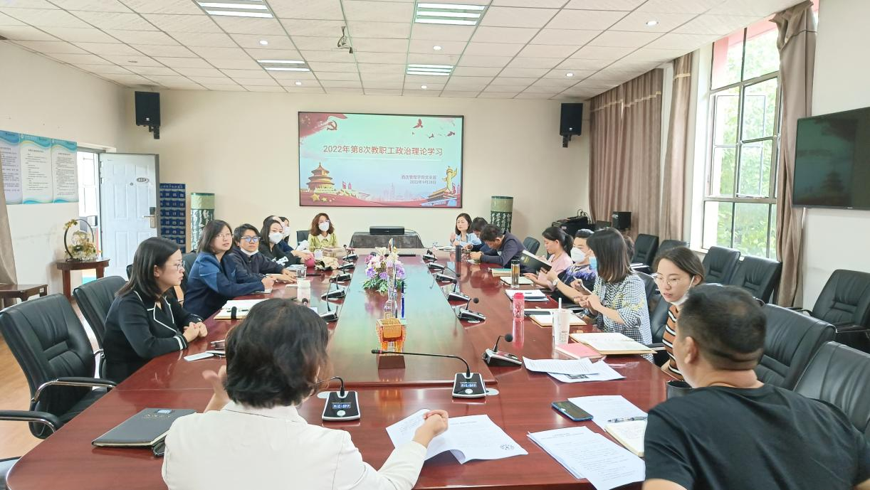 2022年9月28日酒店管理学院2022年度第8次教职工政治理论学习在实训楼302会议室进行。