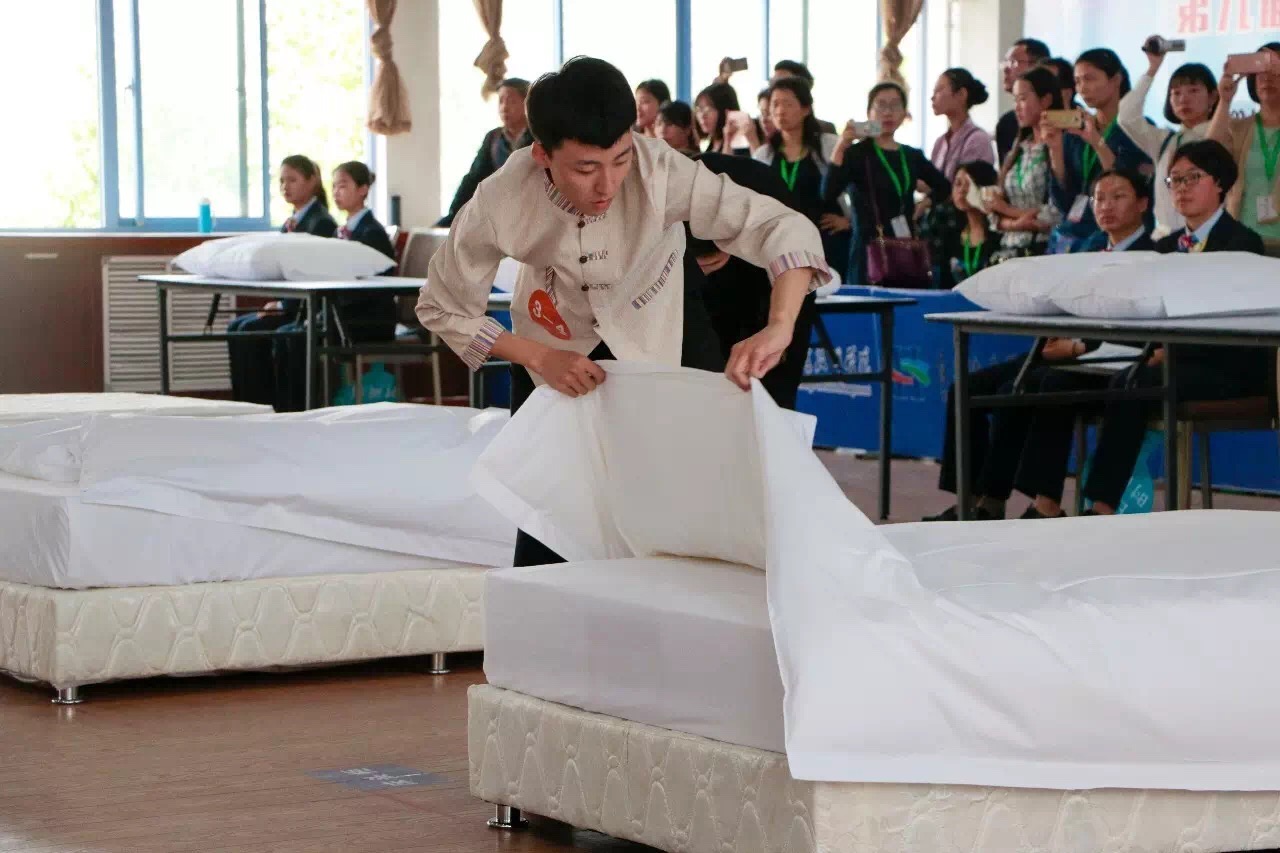 此次大赛来自全国256所本科院校、高职高专院校和中职学校的789名选手们展现了良好的知识储备以及精湛的技艺。酒店管理学院院长杨红波老师受邀担任了此次大赛中餐宴会摆台(本科组)评委。