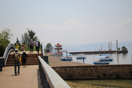 启动仪式结束后,400余名高校师生从抚仙湖生态展示中心前广场出发,途经大河口渔村公园、望海公园、风车广场等景点,亲身体验了11公里的观光栈道,并用手机和相机记录下了抚仙湖的美。他们通过身体力行的方式,积极倡导人们爱护旅游环境,真正做到文明出行、文明旅游。
