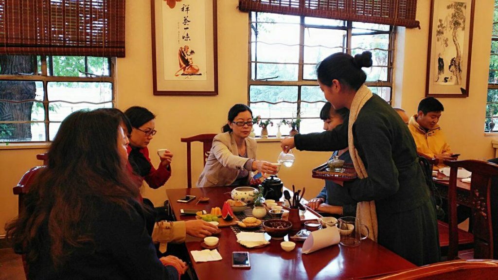 茶品及茶品介绍:接下来各位老师及社员品茶。这次茶会的茶类品名主要有:西湖龙井茶,太平猴魁,冰岛古树茶,宝洪茶,凤庆绿茶,古树红茶六款茶。