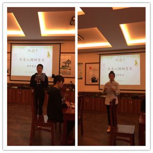 接下来我们开始了茶会的主要内容:读诗及读诗分享。 由两位茶艺社的同学分别为大家分享了林薇因诗集《仍然》,《你是人间四月天》的读书分享体会。